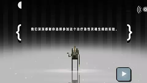 当你看到一个播放的按钮时,点击它便可进入一个奇怪的界面,一个手拿香烟声音柔和的男人开口说话了……简短的陈述之后音乐奏起,点击右下方的按钮便正是开始游戏。