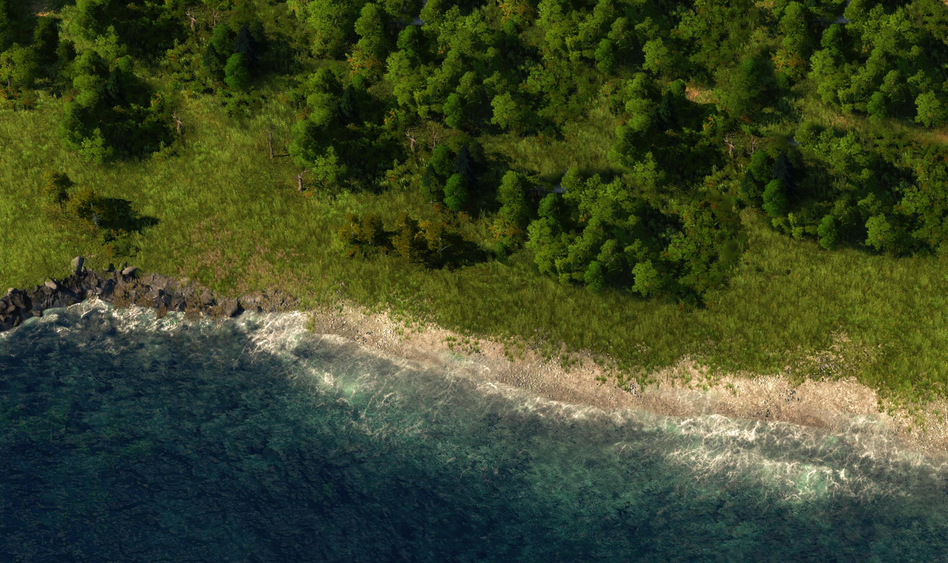 看看下面的概念艺术,了解我们的想法:从一个未受破坏的岛屿上的小定居点到失败的第一次尝试。其次是更可持续的第二次尝试。