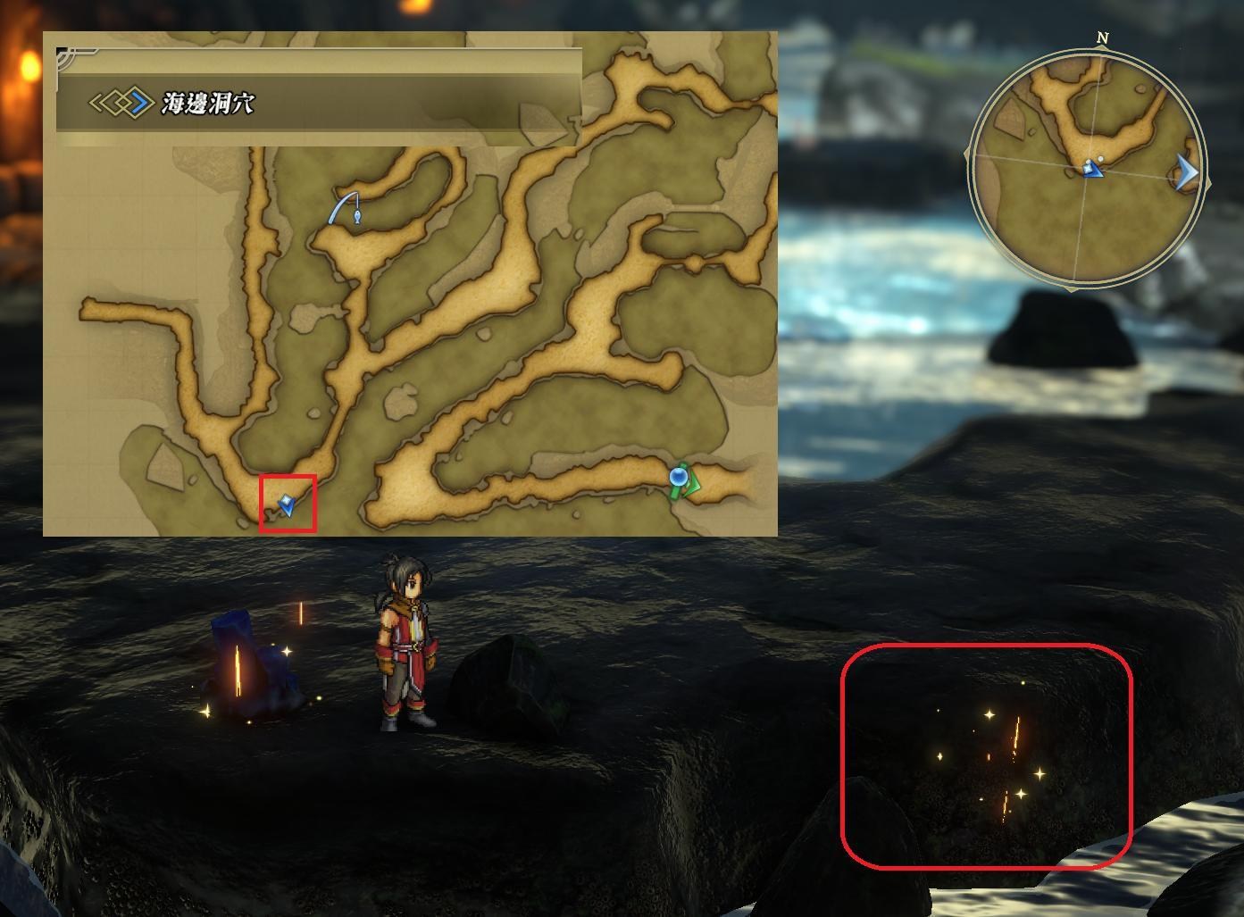 ※中間要找天之卷,位置在海底洞窟紅框處